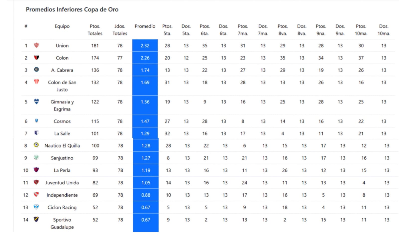 La institución local finalizó el año en el tercer puesto de la tabla general de inferiores, detrás de Unión y Colón. Además, consolidó su lugar en la máxima categoría de la Liga Santafesina.