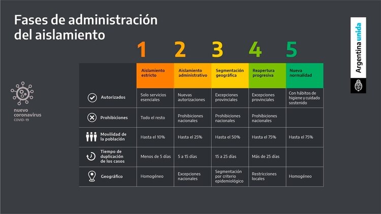 La principal diferencia entre las fases 3 y 4 de administración del aislamiento radica en que, para habilitar nuevas excepciones, como comercios o industrias, en la fase 3 hay que pedirle permiso al Poder Ejecutivo Nacional, mientras que en la etapa 4 son las provincias quienes resuelven.