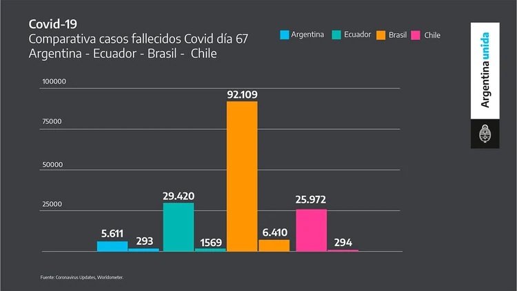 “Si uno mira cómo evoluciona Argentina, uno se sigue dando cuenta que es una situación bastante controlada. No tiene sentido que repare sobre los números. Si se compara con la situación de otros países del continente, como Ecuador, Brasil y Chile, uno ahí puede mostrar el éxito que tuvimos como sociedad controlando la pandemia. No conocemos cómo esto se va a seguir desarrollando”, agregó.