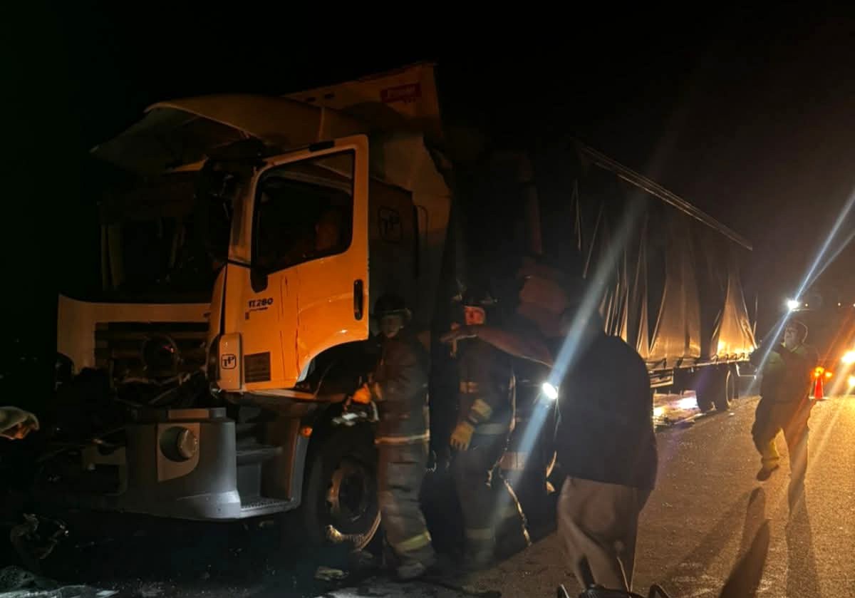 Choque entre camiones en la Autopista: un hombre fue rescatado por Bomberos Zapadores